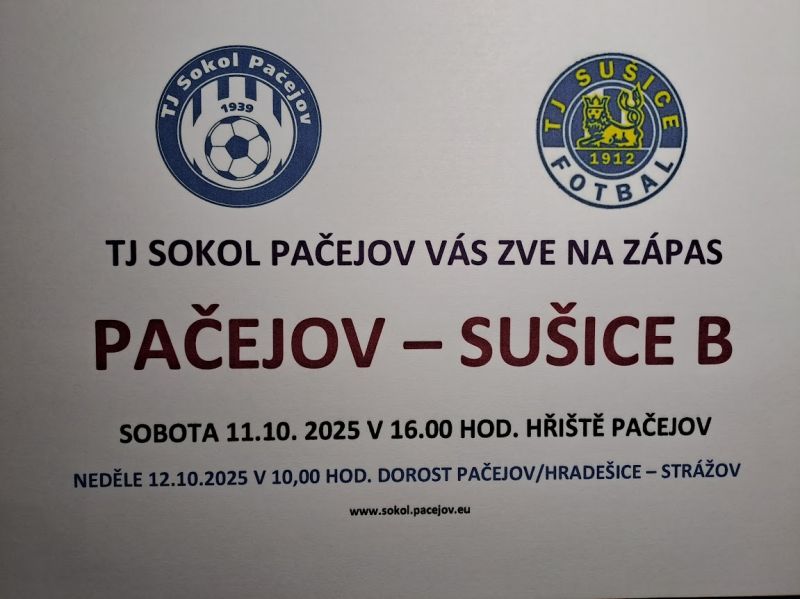 Dorostenci Pačejov/Hradešice nastoupí v neděli v 10,00 hod. proti dorostu Strážova. Jsme na tom v tabulce stejně, tak by bylo moc fajn, kdyby body zůstaly doma a trošku jsme jim odskočili.